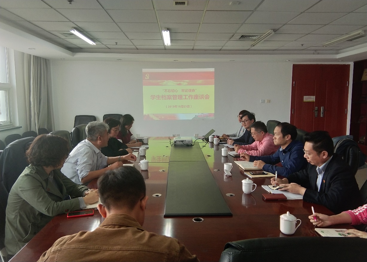 10月23日下午,河北工业大学档案馆董金明馆长一行四人就h视频 档案管理工作进行座谈会,座谈会在节能楼301会议室举行。h视频 党委书记商植桐、院长沈伯雄、党委副书记兼副院长王敏达、科研副院长闵春华,团委书记李辉及各年级辅导员老师参加了此次座谈。