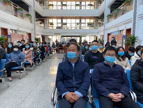11月12日上午h视频 在节能楼二楼大厅组织全院80余人师生党员代表观看十九届六中全会精神解读新闻发布会,其余师生党员在线上自行观看。