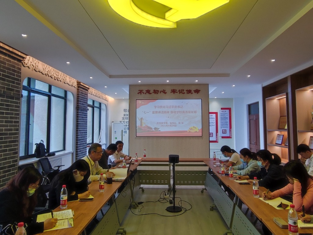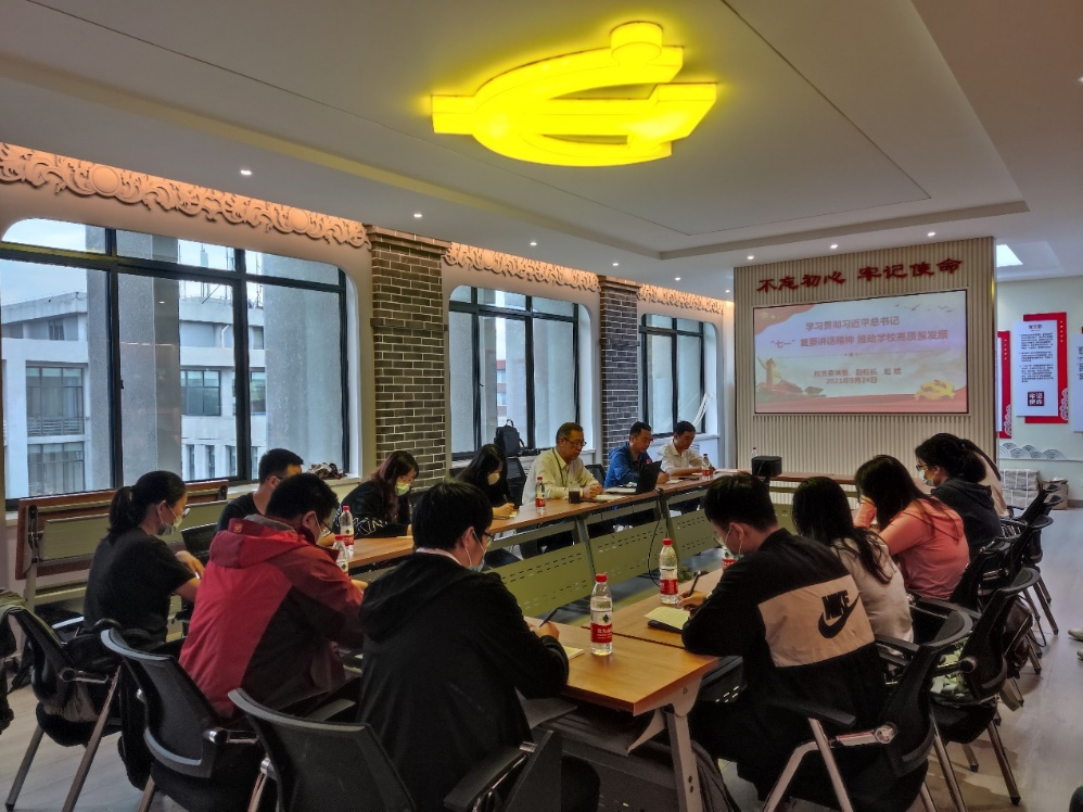 为贯彻落实习近平总书记在庆祝中国共产党成立100周年大会上的重要讲话精神, 9月24日上午,校党委常委、副校长赵斌同志在行政楼A507为h视频 师生做了主题为“学习贯彻习近平总书记’七一’重要讲话精神 推动学校高质量发展”的宣讲。h视频 党委副书记王敏达、各支部委员及学生党员代表参加了宣讲会。会议由王敏达副书记主持。