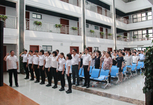 党委副书记兼副院长王敏达同志主持,大会在庄严的国歌声中仪式拉开了序幕,党员们面对党旗,自觉整装肃立,怀着敬意和信仰高唱着国歌。