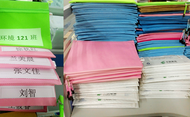 离校期间支部分担了整理档案和办理离校手续的工作。工作中支部别出心裁,为每位毕业生准备防水的档案袋,并在每个袋子外面贴好姓名标签,在同学离校之际送去了一个大大的温暖。