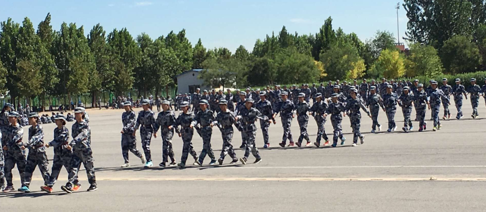 我们正进行着严肃有序的军训,教官的腰板挺直,与我们一同在烈日下训练军姿。