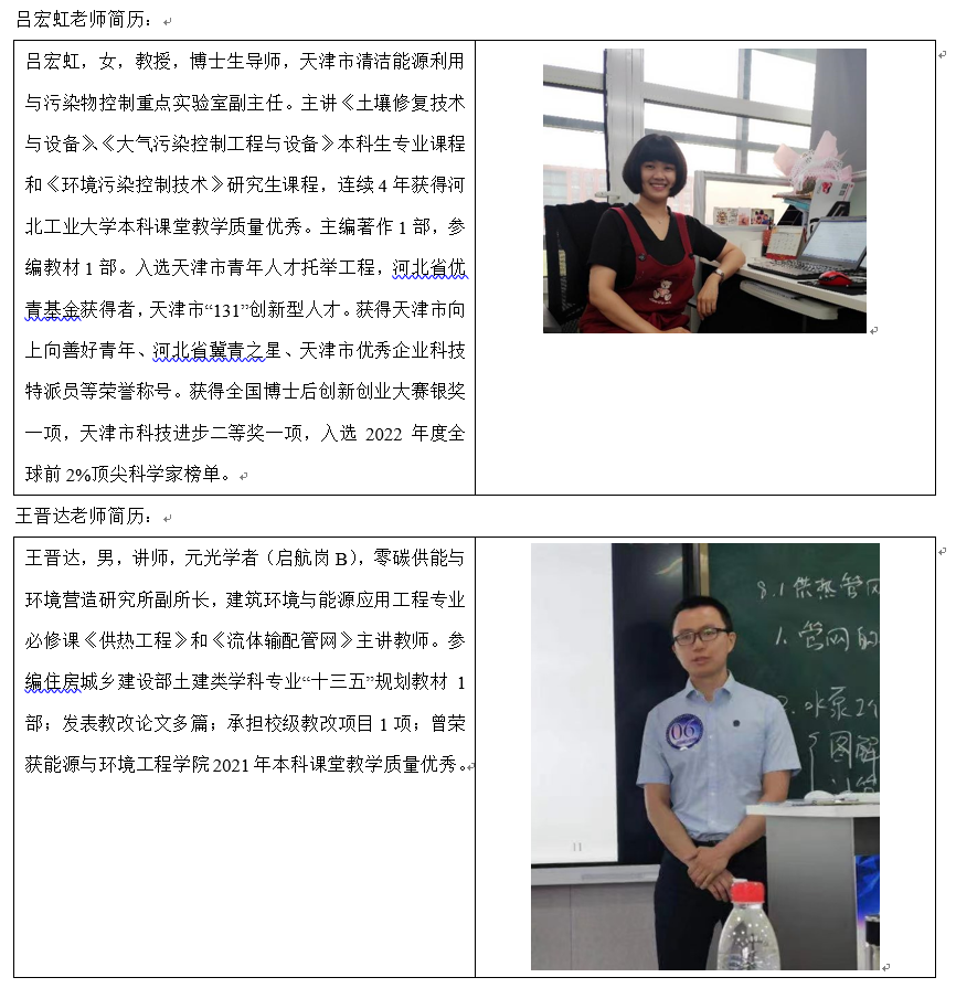 近日,天津市高校青年教师教学竞赛与河北省高校青年教师教学竞赛落下帷幕,我院环保系青年教师吕宏虹和建环系青年教师王晋达分别取得天津市青教赛工科组二等奖与河北省青教赛工科组一等奖的佳绩!