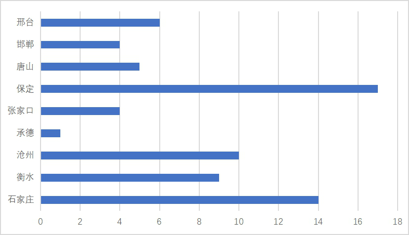 本科毕业生省内生源人数最多的 3 个地区分别为:石家庄市 14 人、保定市17 人、沧州市 10人。