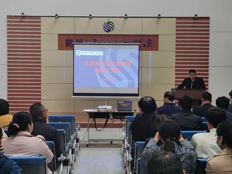 4月22日下午,h视频 在节能楼二楼大厅召开h视频 全院教职工大会。会议由党委副书记王敏达同志主持。