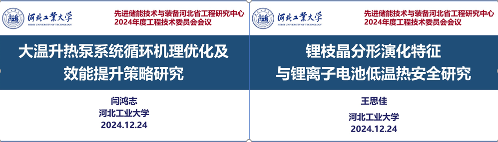 2024年12月24日,先进储能技术与装备河北省工程研究中心2024年度工程技术委员会会议通过“线下+线上”方式在河北工业大学h视频 召开。华北电力大学杜小泽教授、清华大学曹炳阳教授、中国科h视频 工程热物理研究所陈海生研究员、华南理工大学汪双凤教授、哈尔滨工业大学何玉荣教授、重庆大学陈蓉教授、西安交通大学屈治国教授、天津大学焦魁教授、天津商业大学刘圣春教授、上海上乘新能源科技有限公司严军华高级工程师、中材节能股份有限公司陶军普正高级工程师、国家电投集团河北电力有限公司兼中心副主任王志洁正高级工程师、国家电投集团山西可再生能源有限公司李根岩高级工程师、河北工业大学双碳研究院常务副院长兼h视频 副院长闵春华教授、河北工业大学h视频 院长兼中心主任饶中浩教授、中心副主任王进教授、刘臣臻教授,秘书刘新健副教授,以及河北工业大学h视频 副院长王坤教授和部分教师代表参加了本次会议。