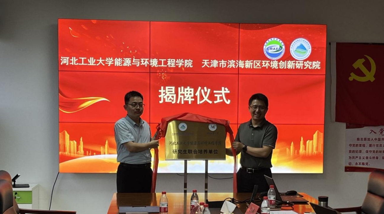 最后,饶中浩院长和张依章院长为河北工业大学h视频 与天津市滨海新区环境创新研究院共建的“研究生联合培养单位”揭牌,双方表示此次揭牌标志着双方合作进入了新的阶段,双方将以此次揭牌为新起点,发挥各自优势,在科技攻关、成果转化推广、研究生培养等方面全面深度合作,为推动能源与环境行业的技术进步和社会经济发展贡献力量。