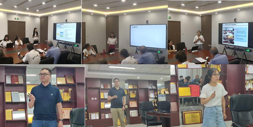 针对教学内容与环节范满老师、张笑老师和甄蒙蒙老师分别从传统课堂教学法、五星教学法、5E教学法和BOPPPS教学法展开讲述。范老师从传统课堂教学法的弊端入手引出五星教学法,详细的讲述了五星教学法的内涵以及如何在教学中运用。张老师从汽车4S店中4S指什么该问题出发,引发大家思考,从而引出5E教学法。通过运用5E教学法给大家讲述了5E教学法的相关内容,由浅入深,趣味十足。甄老师从导入、目标/成果、前测、参与式学习、后测和总结六方面讲述了BOPPPS教学法,将该教学方法详细的阐述得到了大家的广泛认可。