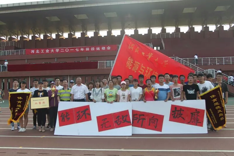 能环无敌,所向披靡,骄阳阻挡不了能环人的热情,感谢为校运会付出的每一个能环人,无论是服务学校的裁判员、引领,还是站在看台上顶着烈日,发出声声呐喊的啦啦队观众,在他们身上,我们看到的是能环的无私精神,如一位位天使,陪在运动员的身边,给予他们温暖与力量。5月20日下午,河北工业大学2017年田径运动会于体育中心圆满落下帷幕。我院学子在骄阳似火的五月里奋力拼搏,荣获教工男子第五,学生精神文明奖等多个奖项。校运会是一次演绎生命活力的盛会,更是一次团结而成功的盛会,它推动着学校体育事业和学校整体工作的全面发展,希望下次的校运动会上我院运动员们继续发扬努力拼搏、积极进取、永争第一、友谊长存的精神,为h视频