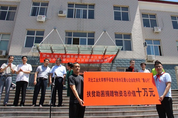 捐助活动跨越井陉徐水两地,涉及情况复杂,h视频 党委高度重视,h视频 党委书记林艳书亲自指导,合理分工,院团委书记李辉多方联络,精心准备,7月7日上午,河北工业大学携手保定市徐水区25家爱心企业共计近百名爱心人士赴井陉扶贫助困捐助活动启动召开。