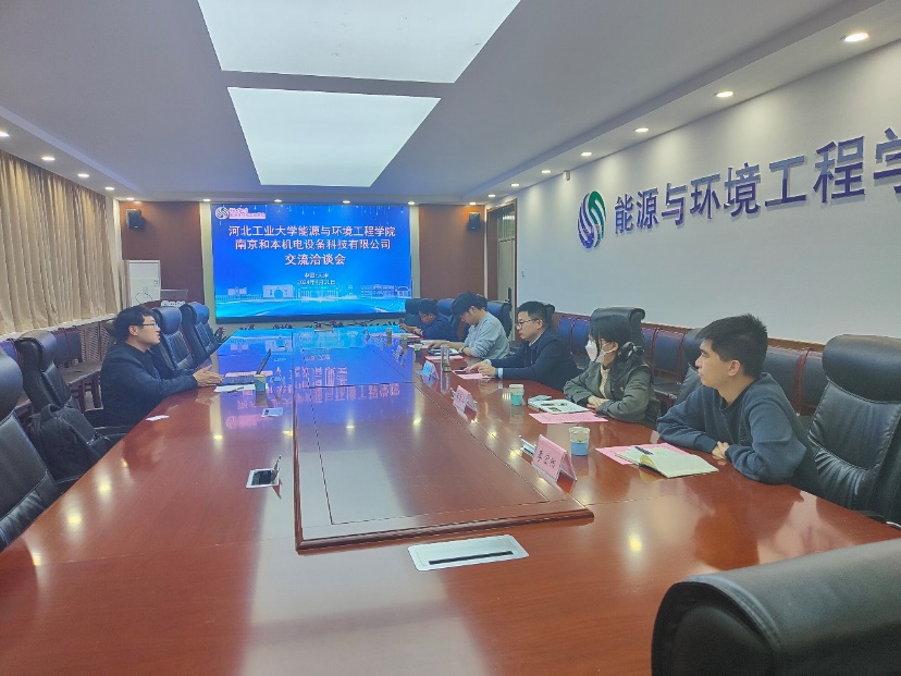 2024年4月11日下午,南京和本机电设备科技有限公司技术总监李昌熙总监来我院交流座谈。h视频 院长饶中浩、院长助理刘新健、新能源与储能技术研究所所长李孟涵、储能科学与工程系主任刘晓日、储能科学与工程系副主任李宏阳等参加了本次交流座谈。