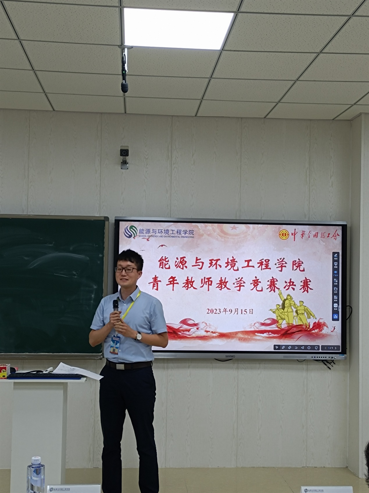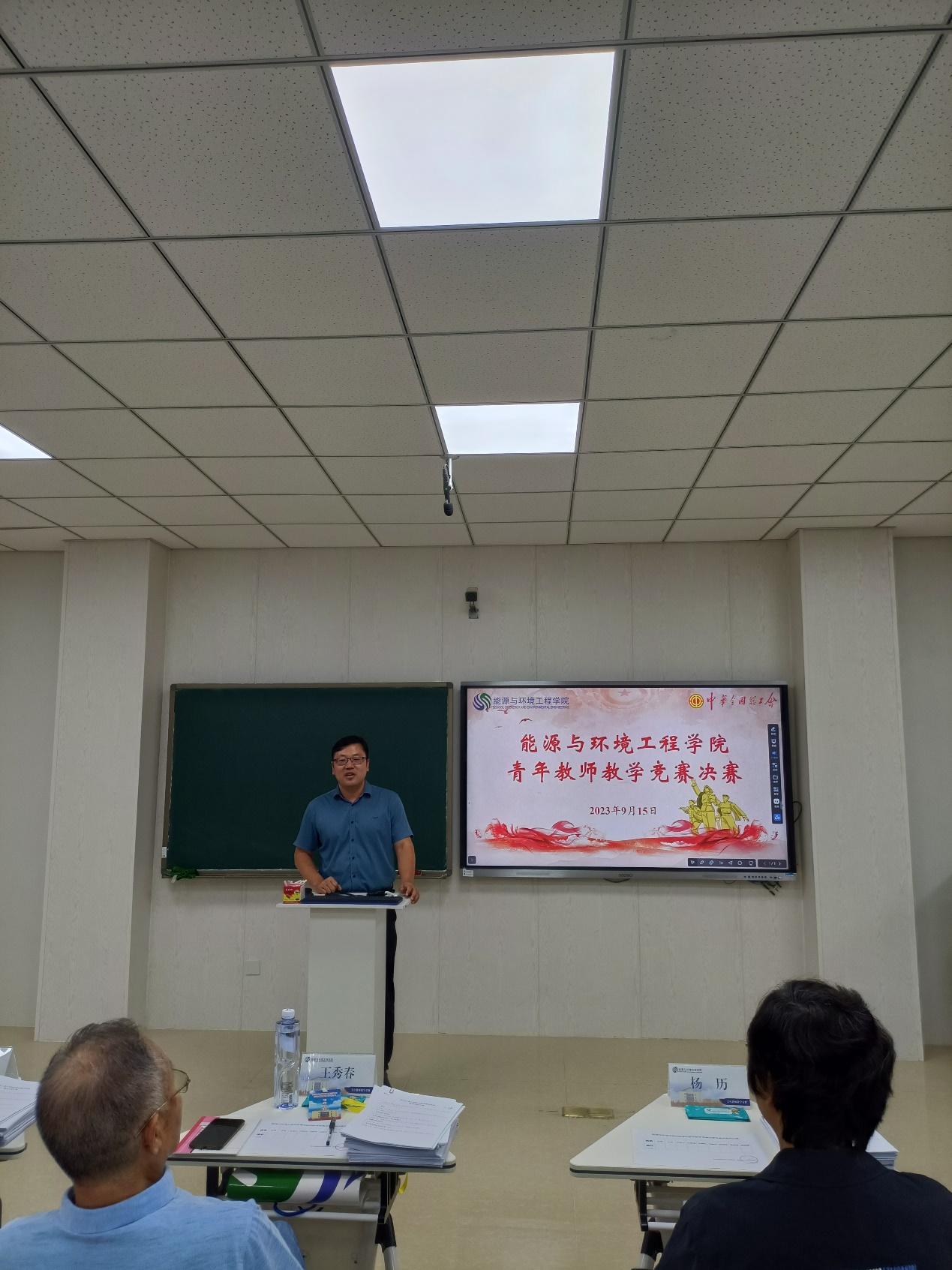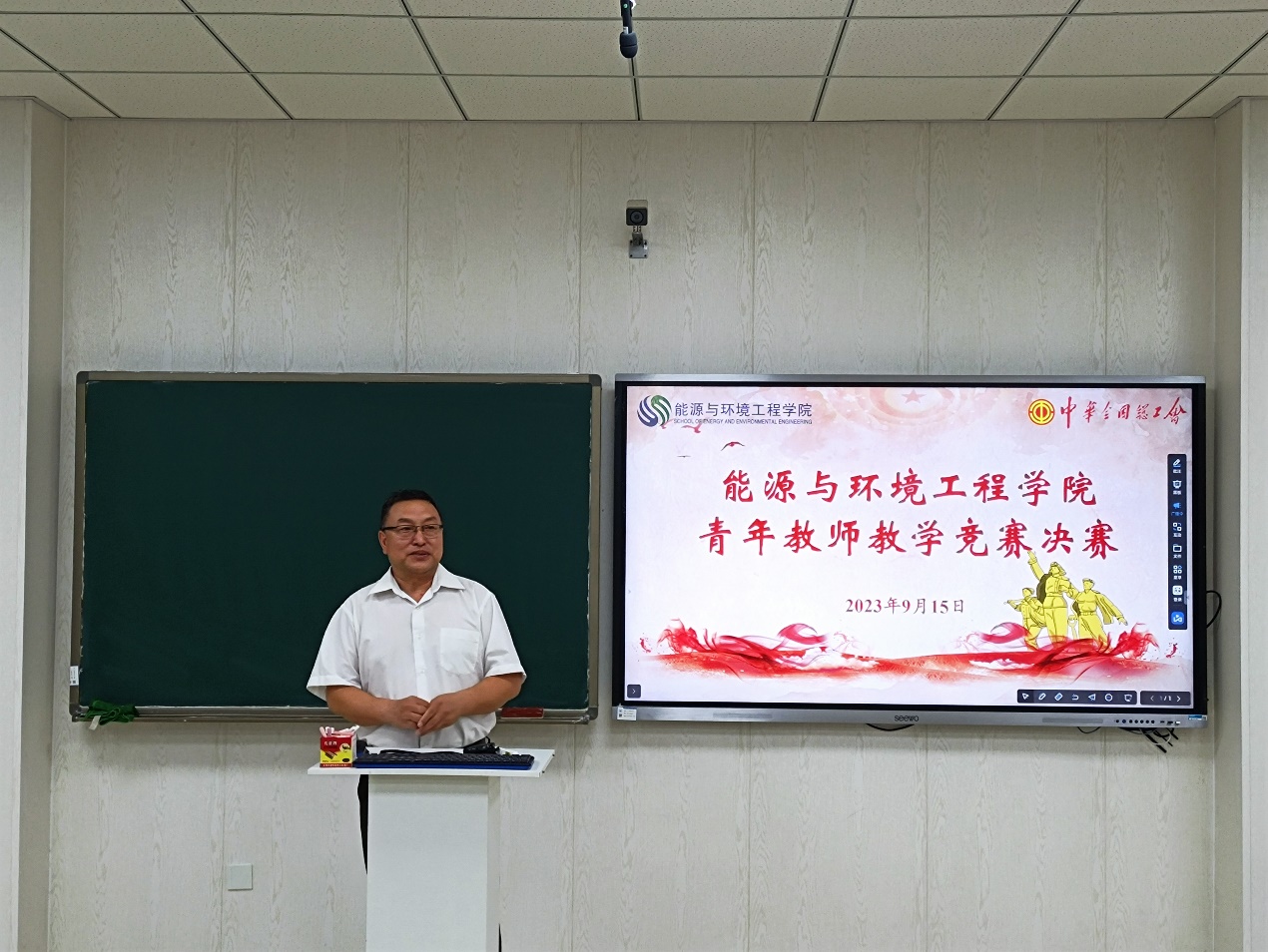 为大力弘扬劳模精神、劳动精神、工匠精神,进一步激发青年教师更新教育理念和掌握现代教学方法的热情,着力提升思想政治素质和教学能力水平。按照校工会通知文件精神“h视频 2023年度青年教师教学竞赛决赛”暨“河北工业大学第十七届青年教师教学竞赛选拔赛”于9月15日下午在北辰校区智慧教室C103成功举办。校工会主席赵全明、院党委书记张慧川和院党委副书记兼副院长张茜茜莅临赛场并给予指导,全院40岁以下的青年教师进行了观摩学习,决赛由青教赛组委会主任王敏达主持。