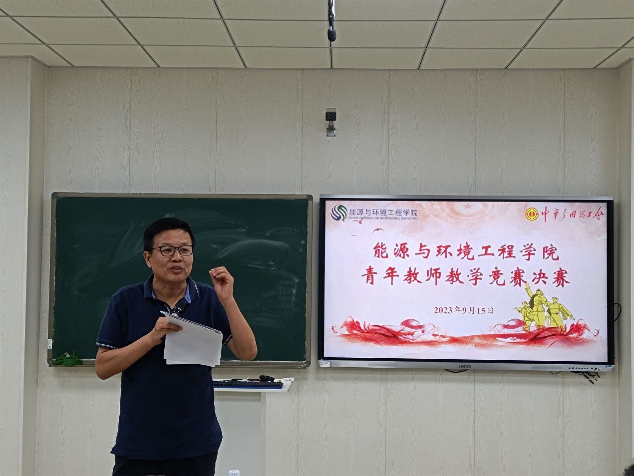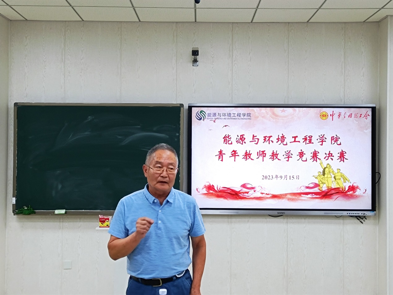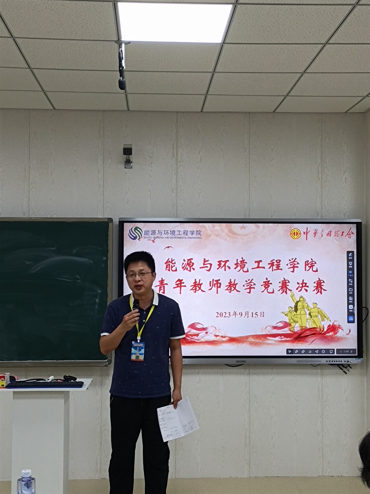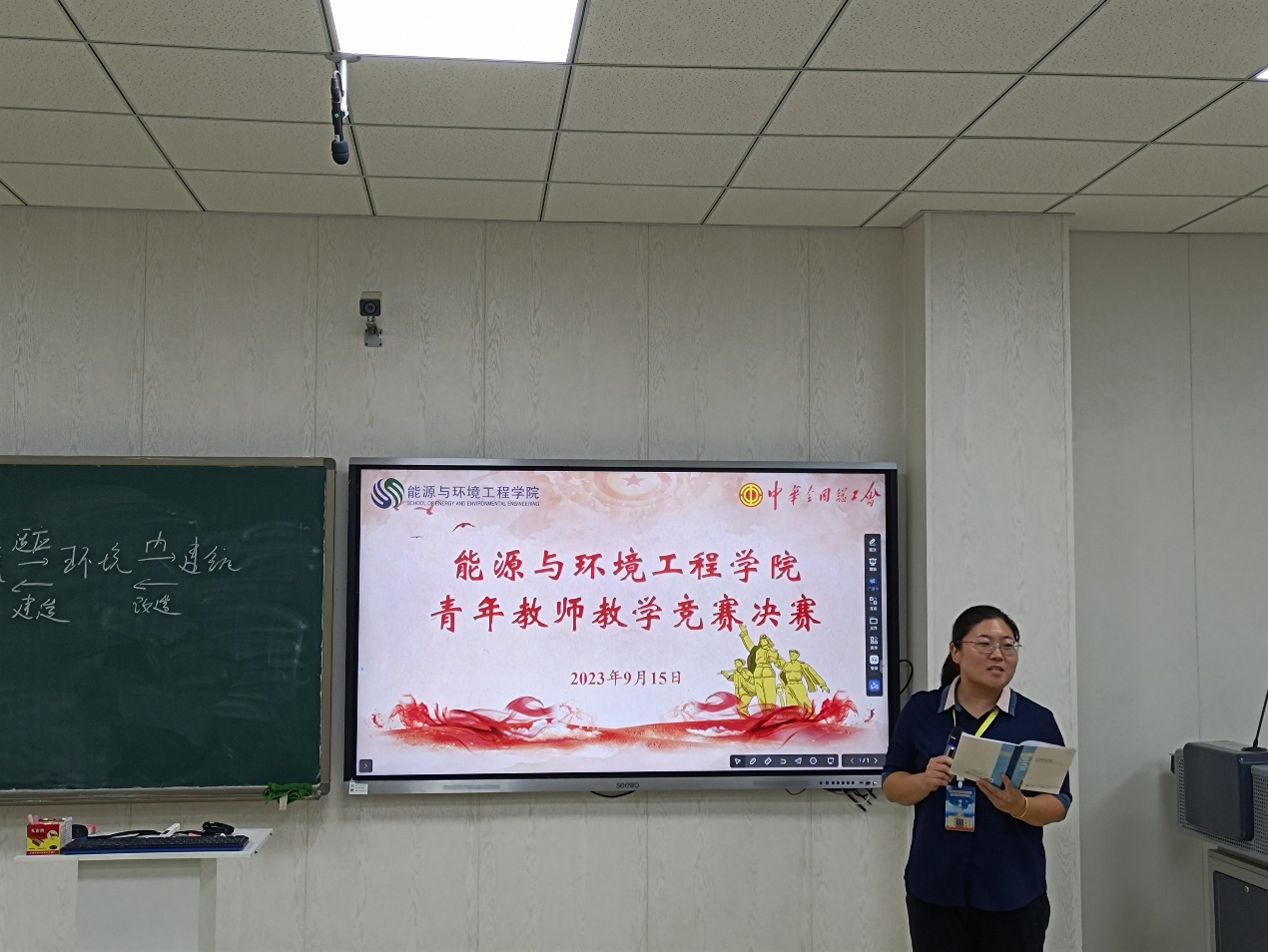 为大力弘扬劳模精神、劳动精神、工匠精神,进一步激发青年教师更新教育理念和掌握现代教学方法的热情,着力提升思想政治素质和教学能力水平。按照校工会通知文件精神“h视频 2023年度青年教师教学竞赛决赛”暨“河北工业大学第十七届青年教师教学竞赛选拔赛”于9月15日下午在北辰校区智慧教室C103成功举办。校工会主席赵全明、院党委书记张慧川和院党委副书记兼副院长张茜茜莅临赛场并给予指导,全院40岁以下的青年教师进行了观摩学习,决赛由青教赛组委会主任王敏达主持。