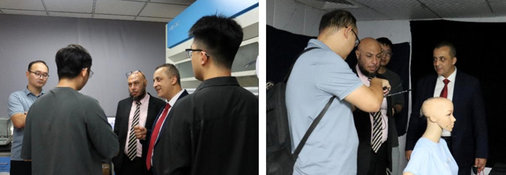 交流会后,在h视频 科研骨干范满、李晗、柴家乐等老师的陪同下,Tamer Nabil院长一行实地参观了相关实验室,详细了解了h视频 在海水淡化技术、能源高效利用与储存、建筑热环境调控等领域的最新科研进展及产学研融合成果。