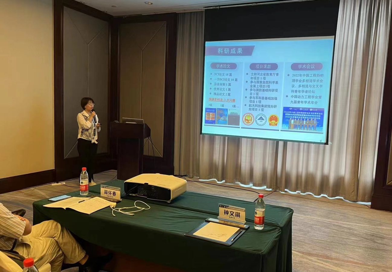 会上新能源与储能技术研究所学术带头人饶中浩教授受邀担任气液两相流(二)分会场主席。另外,在多相反应流分会场,岳远贺老师做了题为“喷动流化床内气固混合效率提升”的学术报告,向大家介绍了关于喷动流化床混合效率提升方法及其在储能颗粒封装的应用前景;在气固两相流分会场,杨柳老师做了题为“超弹性球体与入水空泡的双向耦合研究”的学术报告,针对入水降载问题,汇报了超弹性体入水过程的结构体变形行为与空泡的耦合规律及机理。