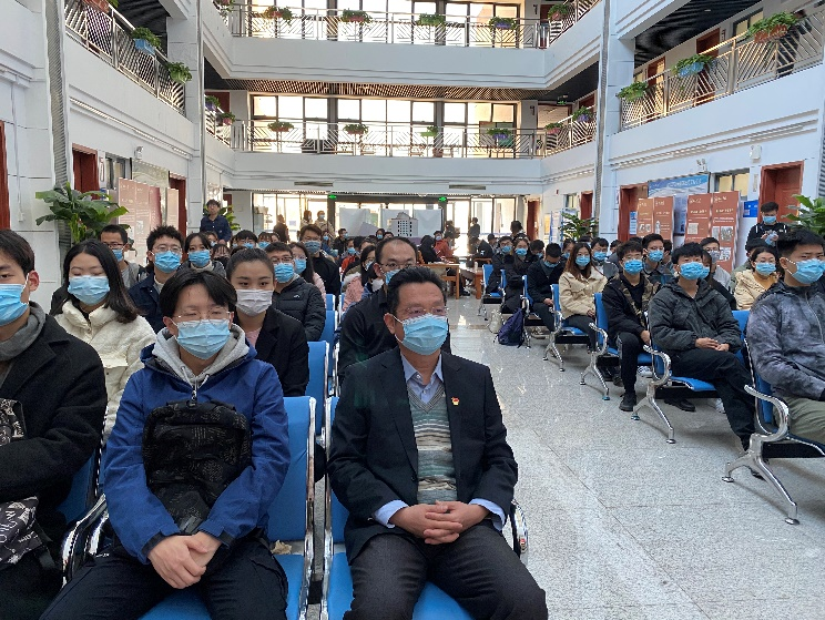 11月12日上午h视频 在节能楼二楼大厅组织全院80余人师生党员代表观看十九届六中全会精神解读新闻发布会,其余师生党员在线上自行观看。