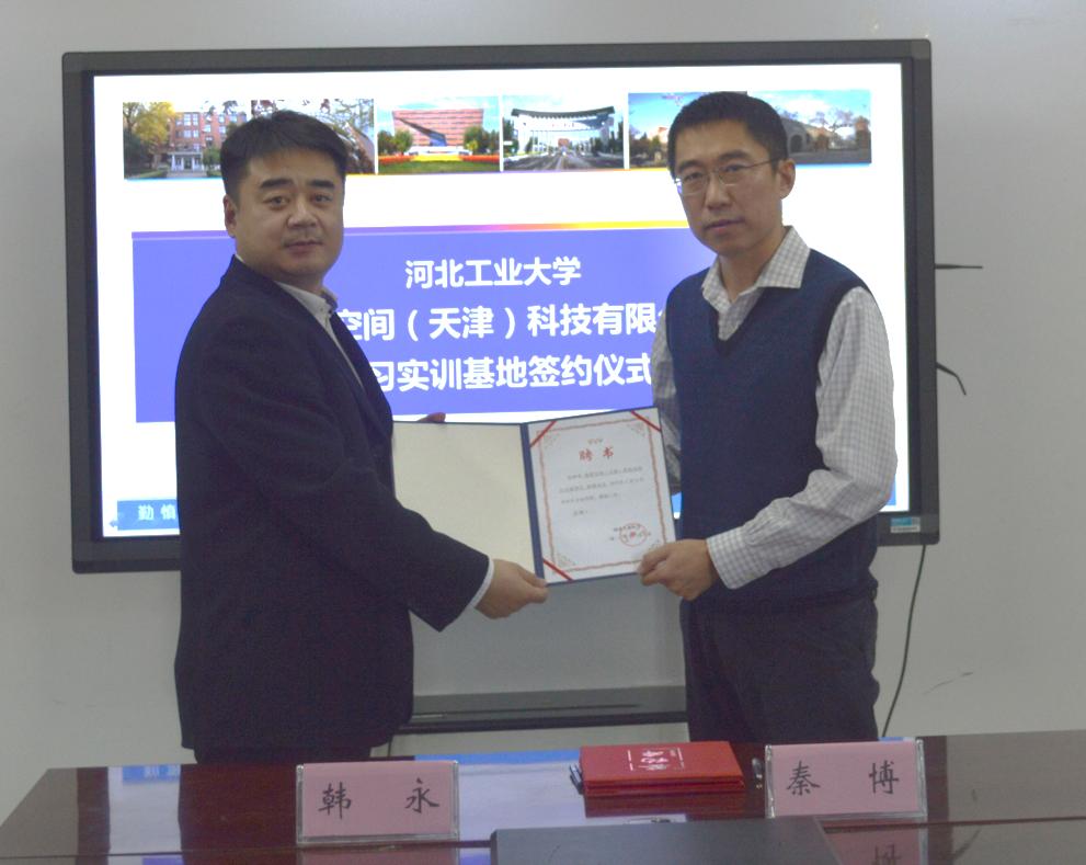 伴随着热烈的掌声,我校与象限空间(天津)科技有限公司完成校企协同实习实训基地签约、授牌,本科生院副院长韩永为秦博董事长授导师聘书。