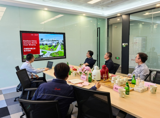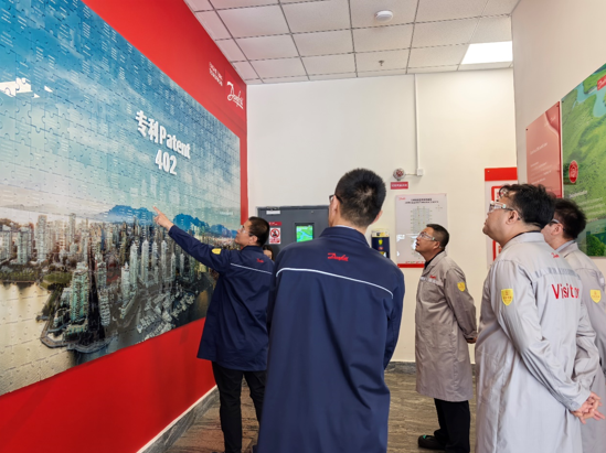 签约仪式结束后,h视频 一行三人,在丹佛斯(天津)有限公司商用压缩机中国研发负责人马福云、实验室高级经理段晨钧的陪同下,参观了丹佛斯(天津)有限公司生产线、标准实验室等。通过工作人员的介绍,了解了企业的发展历程、h视频、产品范围和典型工程案例。随后与会人员围绕具体合作事项展开深入交流,碰撞出智慧的火花。大家积极建言献策,共同探讨合作细节与实施路径,力求让合作项目尽快落地生根、开花结果。